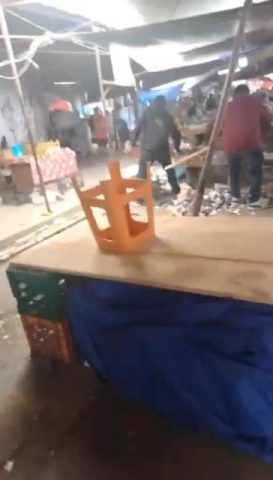 Presuntamente un grupo de cholos ingreso a la central de abastos donde realizaron destrozos en los puestos y locales, detonando armas fuego.