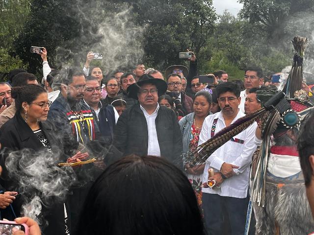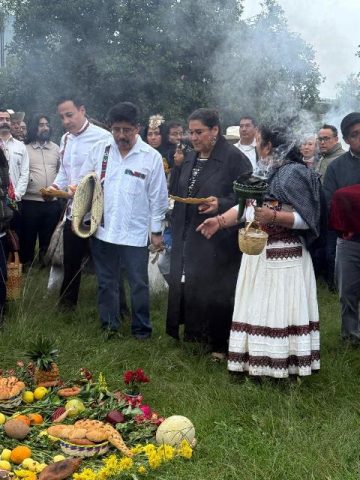 Destacando que desde las primeras horas de este primer día de septiembre de 2025, al filo de las seis de la mañana el ministro Hugo Aguilar Ortiz acompañado de ministras y ministro de la nueva Suprema Corte de justicia de la Nación, así como miembros de comunidades indígenas, se dieron sita en un evento cerrado al público en la zona arqueológica de Cuicuilco, con el objeto de llevar a cabo la consagración de los bastones de mando que les serán entregados por la tarde en el Zócalo.