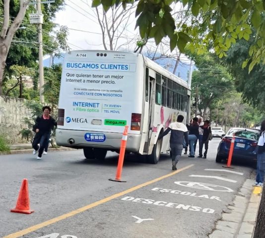 Esta mañana normalistas del CRENO, toman autobuses del transporte público en sobre la Calzada San Felipe del Agua.