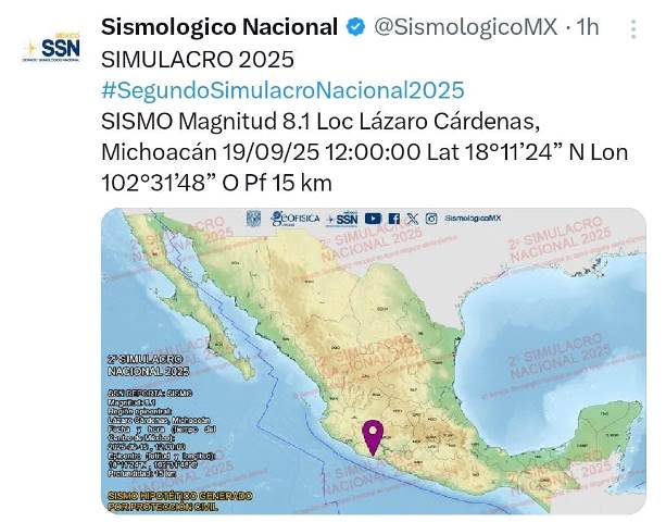 Este simulacro tuvo una hipótesis de un sismo con magnitud de 8.1 con epicentro en Lázaro Cárdenas, Michoacán