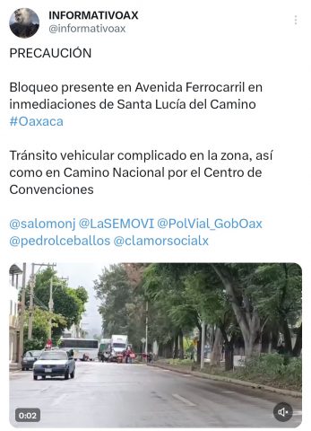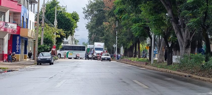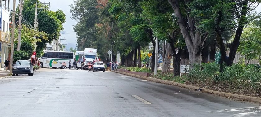 Esta mañana vecinos de la colonia Aquiles Serdán de Santa Lucía del Camino, bloquean sobre Avenida Ferrocarril, por incumplimiento de obras.
