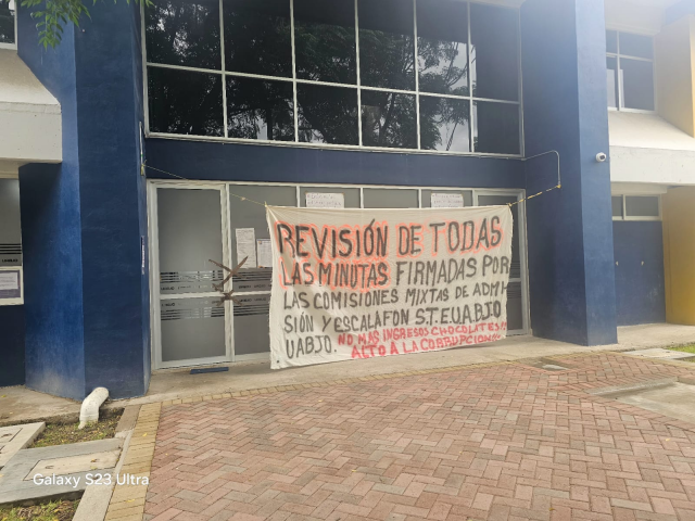 A esta manifestación se suma la que se mantiene en la Dirección de Servicios Escolares, que de igual forma se mantiene tomada la sede en apoyo a la petición de la revisión de los ingresos irregulares y las nuevas bolsas de trabajo.