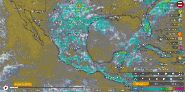 Para el Pacífico Sur por la mañana, cielo medio nublado y bancos de niebla en zonas altas. Ambiente fresco y templado en zonas costeras. Cielo nublado y lluvias matutinas en zonas de la región. Durante la tarde ambiente templado a cálido, y caluroso en el sureste de Oaxaca y oriente de Chiapas. Cielo nublado con lluvias puntuales intensas en Guerrero, Oaxaca y Chiapas; todas con descargas eléctricas, y con posible caída de granizo en zonas altas, las cuales podrían reducir la visibilidad, ocasionar inundaciones, encharcamientos y deslaves, así como incrementar los niveles de ríos y arroyos. Viento de dirección variable de 10 a 25 km/h con rachas de 40 km/h en la región.