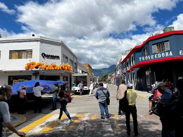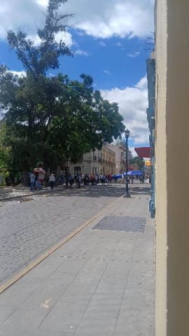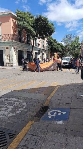 Los supervisores y jefes de sector de la Sección 22 de la CNTE están llevando a cabo un bloqueo en la calle Independencia esquina con Fiallo en el centro de la Ciudad de Oaxaca.