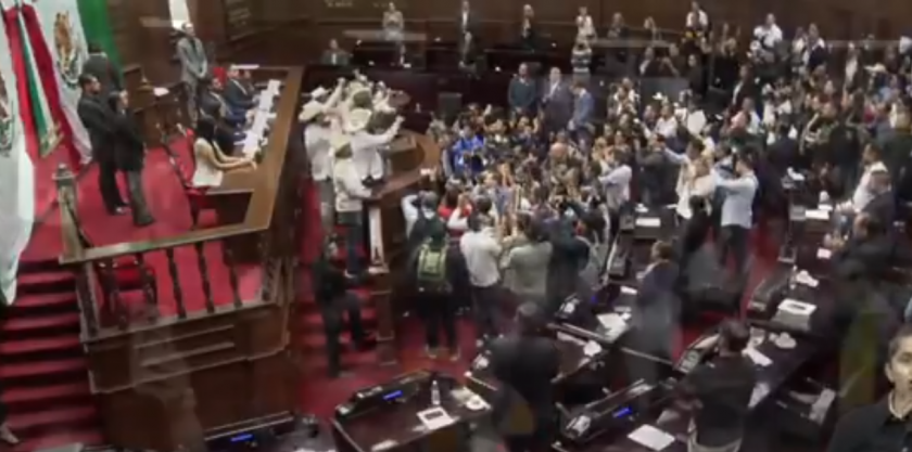 La toma de protesta se llevó a cabo en una sesión extraordinaria del Congreso local, en medio de un fuerte dispositivo de seguridad y un ambiente de consternación, apenas cuatro días después del homicidio de su esposo, ocurrido el 1 de noviembre durante los festejos del Día de Muertos en la Plaza Principal de Uruapan.