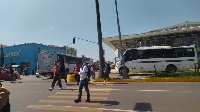 La Sección 22 del SNTE y normalistas bloquean la Calzada Héroes de Chapultepec, esquina con Emilio Carranza, a la altura del ADO, tomando autobuses del transporte urbano.