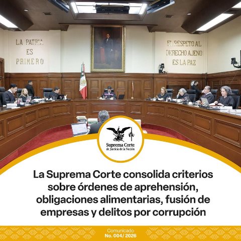 LA SUPREMA CORTE CONSOLIDA CRITERIOS SOBRE ÓRDENES DE APREHENSIÓN, OBLIGACIONES ALIMENTARIAS, FUSIÓN DE EMPRESAS Y DELITOS POR CORRUPCIÓN
