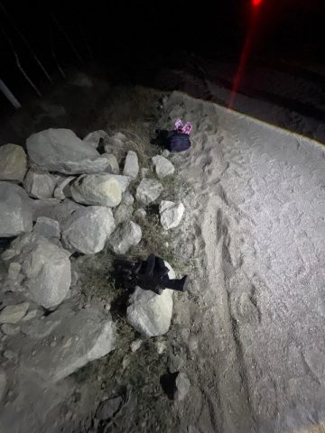 Los tripulantes de la motocicleta arrojaron al suelo un objeto y una mochila que quedó abandonada a un costado del camino.