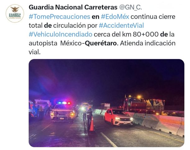 Ante lo ocurrido se recomienda a los automovilistas consultar a través de las cuentas oficiales de la Guardia Nacional o CAPUFE.