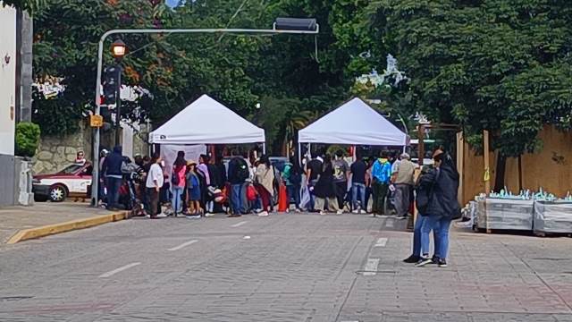 Trabajadores del Poder Judicial de la federación en Oaxaca, inician bloqueo y toma de las oficinas en Av. Juárez, nuevamente colocando módulos y lonas en la calle afectando el cierre de la circulación vial.