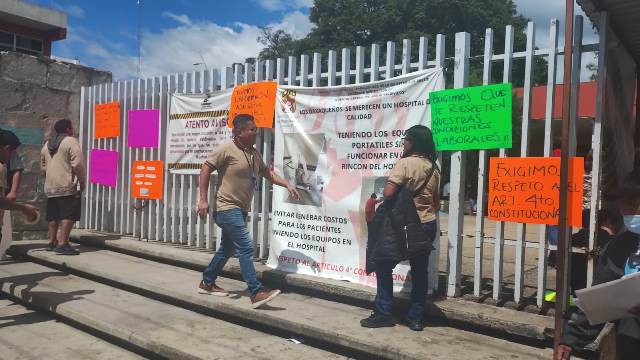 Trabajadores del Hospital General, Dr. Aurelio Valdivieso, realizan paro de labores y el cierre de accesos al lugar, esto para exigir el respeto a las condiciones laborales.