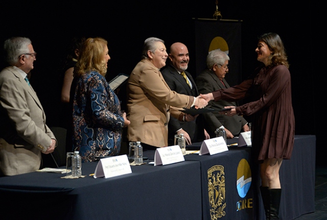 Manola Giral de Lozano, directora general de Incorporación y Revalidación de Estudios (DGIRE), felicitó a las 243 profesoras y profesores distinguidos y también a sus familias porque los han acompañado siendo testigos del trabajo para preparar una clase, del tiempo invertido en la revisión de exámenes.