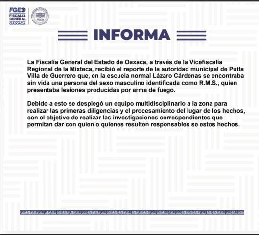 La Fiscalía General del Estado de Oaxaca, (FGEO) investiga los hechos ocurridos pero hasta el momento no hay detenidos.
