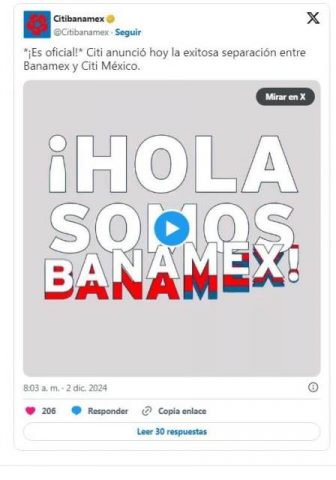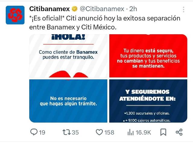A través de su cuenta en X @Citibanamex publico lo siguiente con la información para sus clientes.