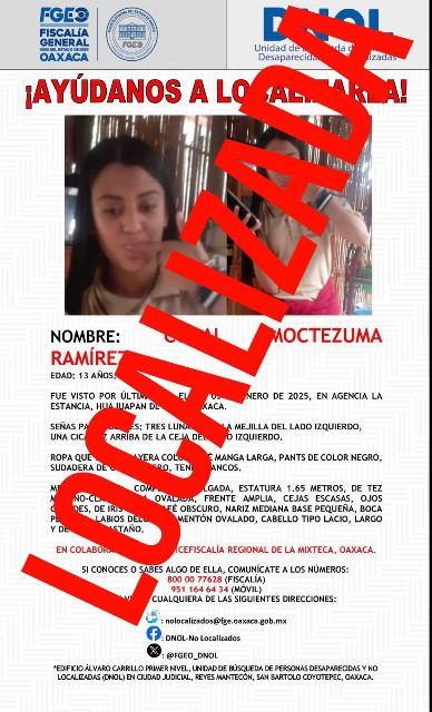 Los hechos ocurrieron el 05 de enero de 2025, cuando la menor de edad fue vista por última vez en su domicilio, ubicado en el municipio de Huajuapan de León, en la región de la Mixteca.