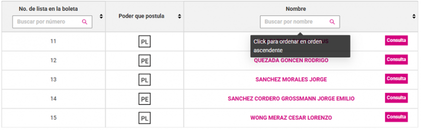 Como en los demás casos de los diversos puestos a ocupar dentro de las elecciones del Poder Judicial Federal en este año 2025, al momento de oprimir el botón de consulta, nos aparecen datos de referencia de las y los candidatos, como lo son el número de referencia dentro del listado nominal, teléfono y correo electrónico de contacto, páginas web, redes sociales y por supuesto, el cargo al que aspiran ocupar.