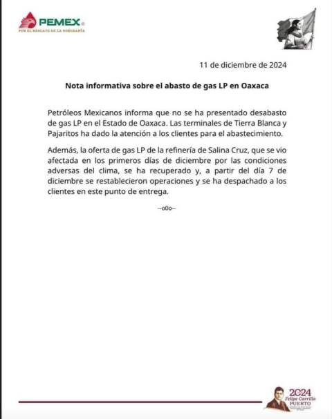 A partir del día 7 de diciembre se restablecieron operaciones y se ha despachado a los clientes en este punto de entrega