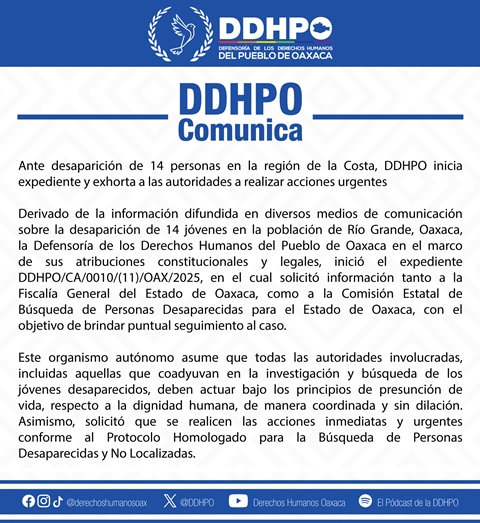 La DDHPO reafirma su compromiso con la libertad de expresión, la labor periodística y la defensa de los derechos humanos, pilares fundamentales de una sociedad democrática.