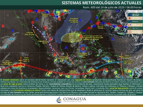 Ciudad de México a 22 de Julio del 2025. Para hoy, el monzón mexicano sobre...