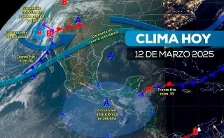 Oaxaca de Juárez, Oax. 13 de marzo de 2025. Para hoy, una circulación anticiclónica en...