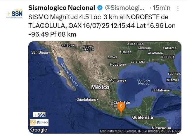 2 de agosto de 2025 Un fuerte sismo se registro en la capital oaxaqueña de...